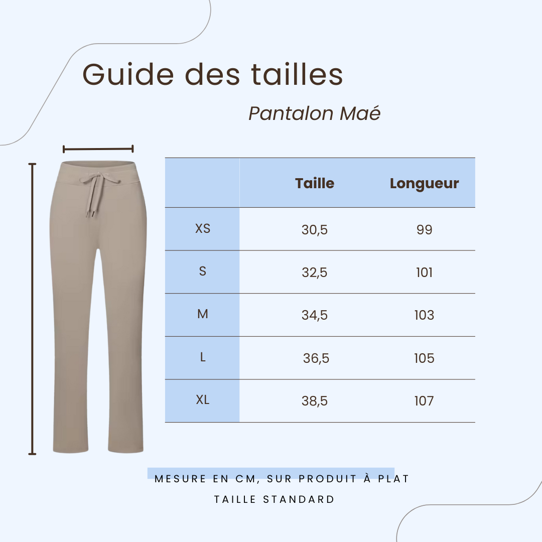 The Maé pants are the perfect balance of comfort and style. Crafted from ultra-soft, stretchy fabric, they delicately hug your curves while offering unparalleled freedom of movement. Their relaxed fit and high waist with adjustable drawstring ensure optimal support without compromising comfort.