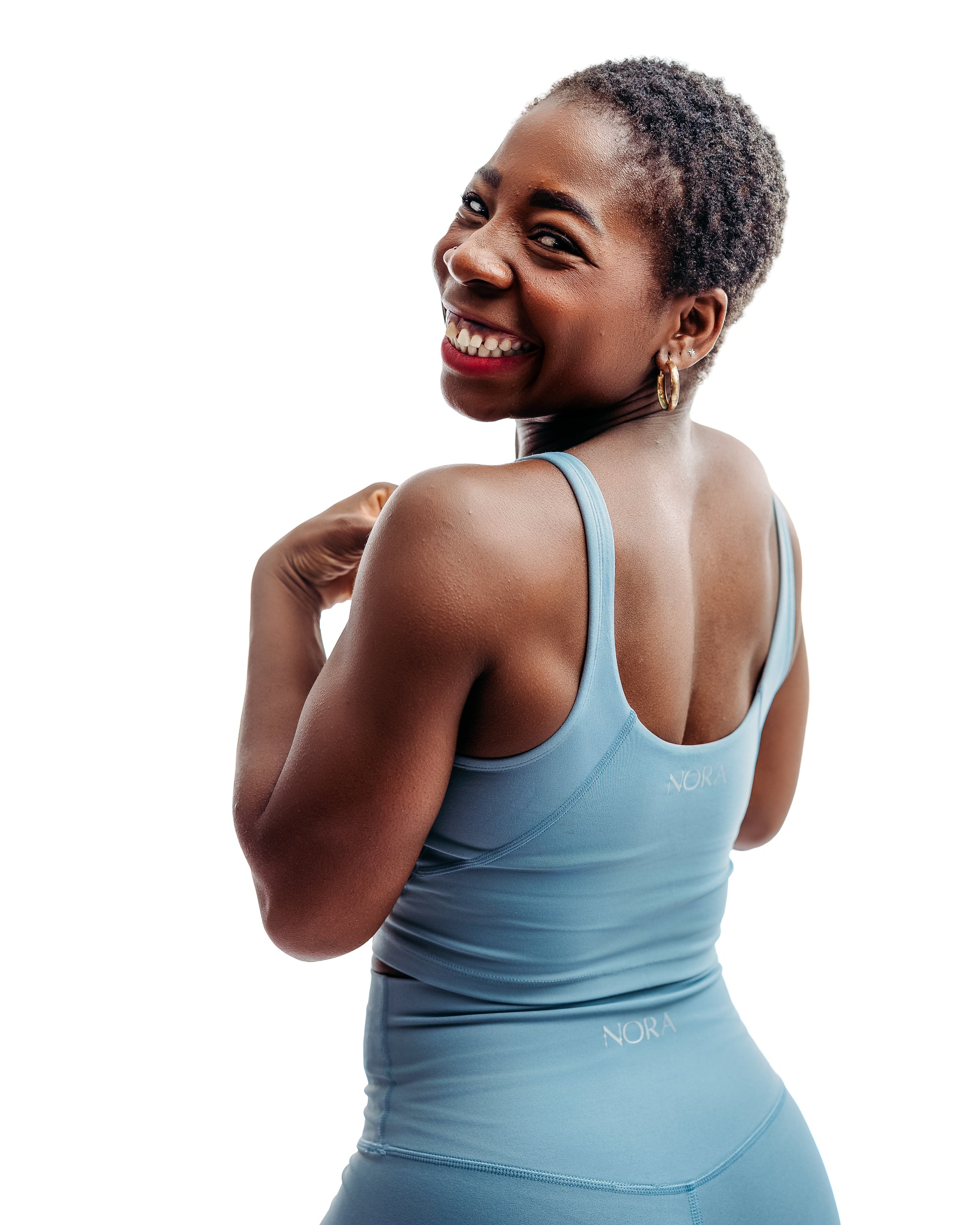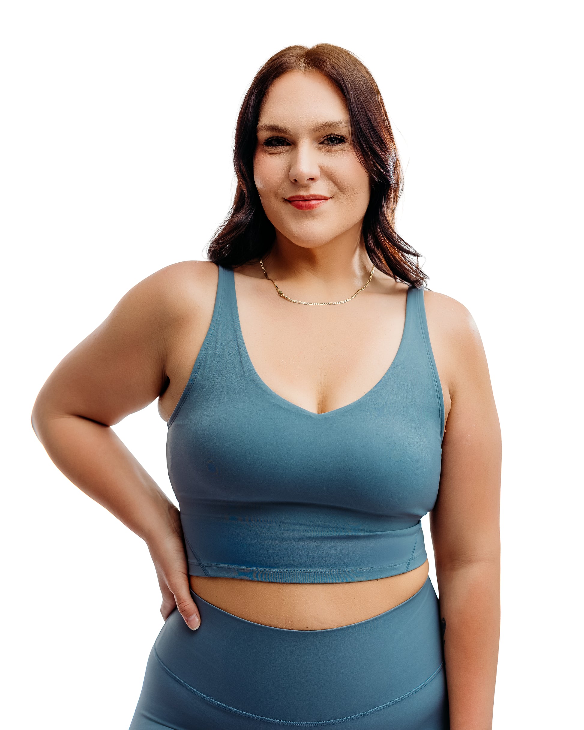 The Victoria sports bra is made of breathable, stretchy fabric. It offers a comfortable fit and moderate support. Its V-neck and camisole-style length offer a relaxed look that pairs perfectly with the Ana leggings or a pair of jeans!