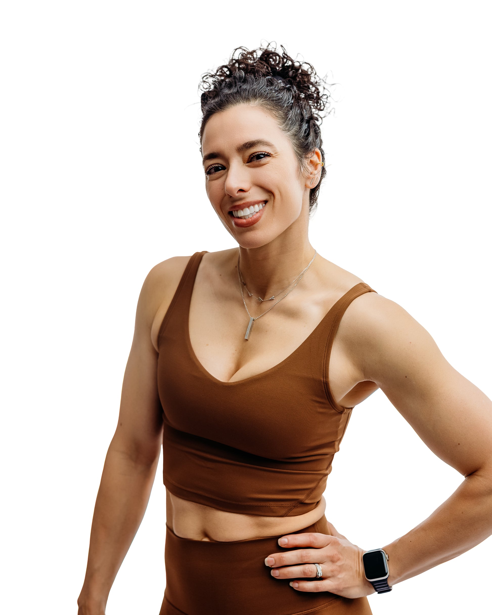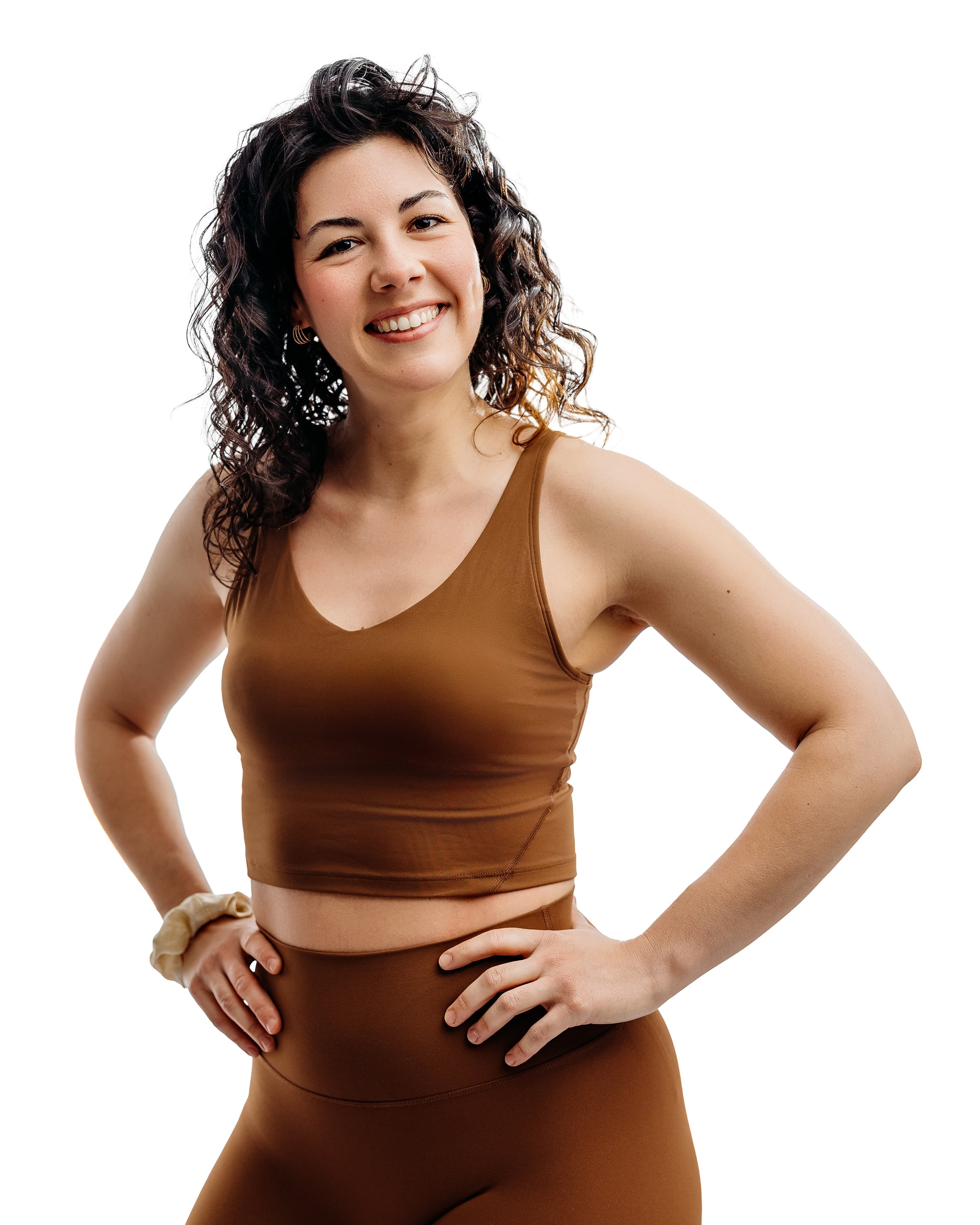 The Victoria sports bra is made of breathable, stretchy fabric. It offers a comfortable fit and moderate support. Its V-neck and camisole-style length offer a relaxed look that pairs perfectly with the Ana leggings or a pair of jeans!
