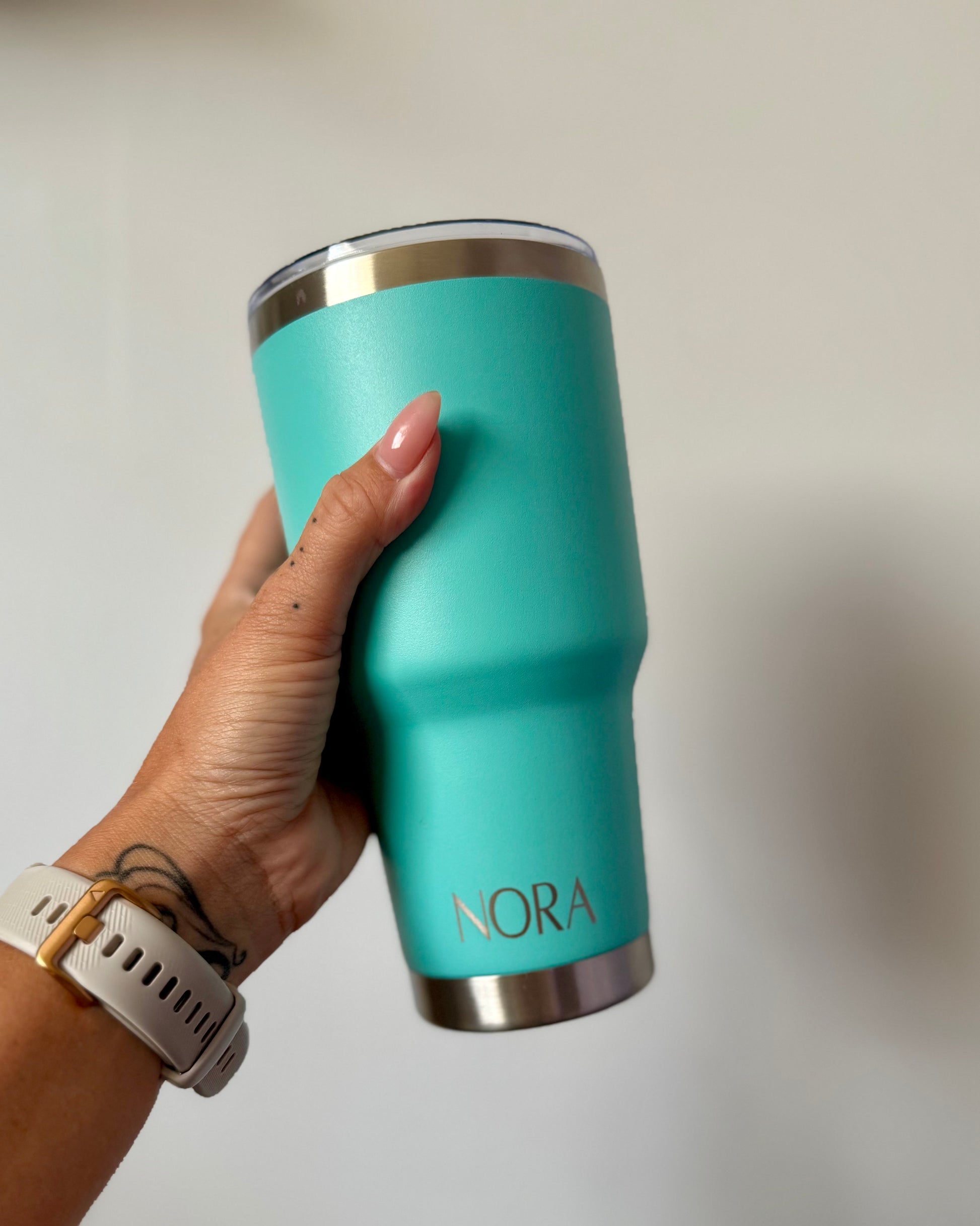 With its large 30 oz capacity, sleek design, and spill-proof lid, the NORA mug goes everywhere you go—to the gym, the office, or on the road. It keeps your water cold for hours (or your coffee piping hot when you need it).